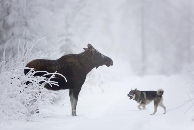 Hirvenhaukkukokeessa testataan koiran toimintaa metsässä.