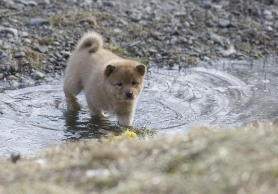 Oikeassa metsässä kävimme vain kerran ja sekin oli melkeinpä liian jännittävää – ei pennuille, vaan minulle. Vaikka jotkut Ezhvan ja Akun pennuista ovat ehkä harkitsevampia kuin toiset, yhtään arkajalkaa ei tässä joukossa ole. Olin helpottunut, kun metsästä kotiin palatessamme kaikki neljä olivat tallella, sillä niin innokkaita nämä ”kaijat” olivat tutustumaan suureen maailmaan.
